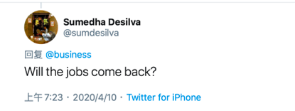网友Sumedha Desilva质疑,“就业机会将会回流?”↓
