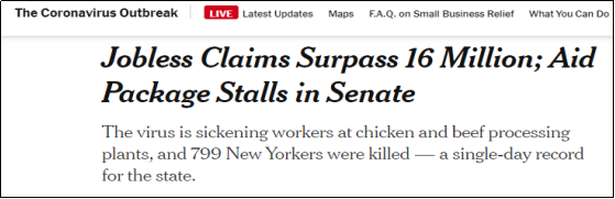 4月12日是美国复活节,总统特朗普此前曾提出,希望看到美国经济在复活节后开始复苏,然而如今看,似乎希望渺茫。最直观的就是,整整两周前的3月27日,特朗普签署了史无前例的2万亿美元经济刺激法案,如今两周过去了,2万亿的效应并不显著,相反,美国倒新增了将近1700万的失业大军。
