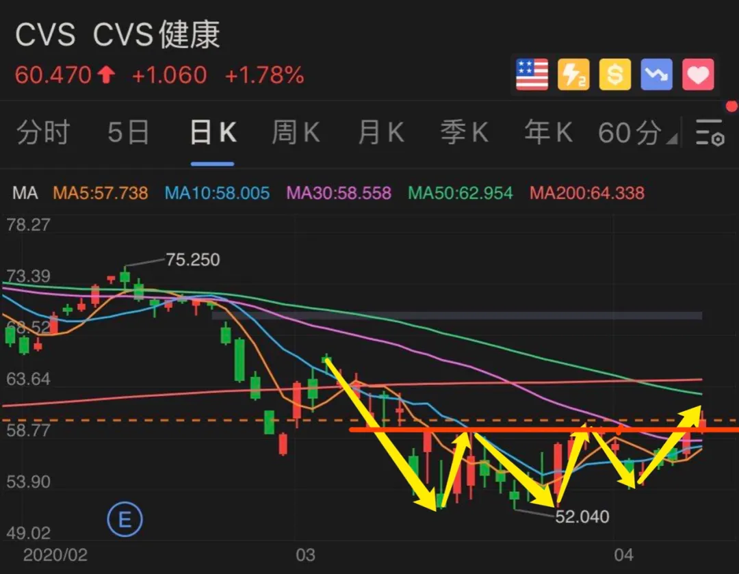 在疫情期间,逆势扩大招聘规模,证明CVS的业绩受到的影响没那么大。技术形态更是一目了然,头肩底+突破颈线,这种技术形态出现,本周必有暴涨。本周UNH要发财报,如果超预期的话,必然会带动医疗保健板块集体暴动,这可能是一个机会。