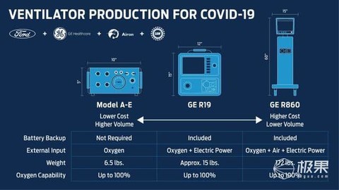 除了特斯拉,其他车企业并没有闲着,福特和通用电气GE医疗集团联合宣布了一项紧急计划,它们将联手在未来100天内生产50000台呼吸机以对抗疫情,这款由两家公司联手制造呼吸机由Airon Corp设计其名称为GE / Airon A-E型,这款特殊的呼吸机可以在普通大气压下运行,无需插电即可使用,将大大提升临床急救效率。