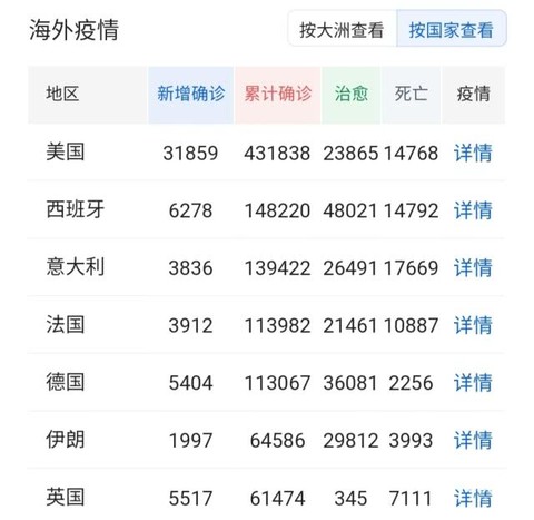 近日(4月9日数据),新型冠状病毒肺炎海外累计确诊人数已经达到了1431402例,现有确诊1104867例,累计治愈241524例。其中,美国累计确诊病例已经达到了431838例,西班牙累计确诊病例148220例,意大利累计确诊病例139422例,法国累计确诊病例113982例,德国累计确诊病例113067例……疫情形势依然非常严峻。