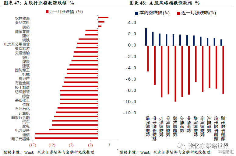 近一个月,上涨的行业仅有三个,分别是农业(2.69%)、食品饮料(1.6%)、医药(0.85%)