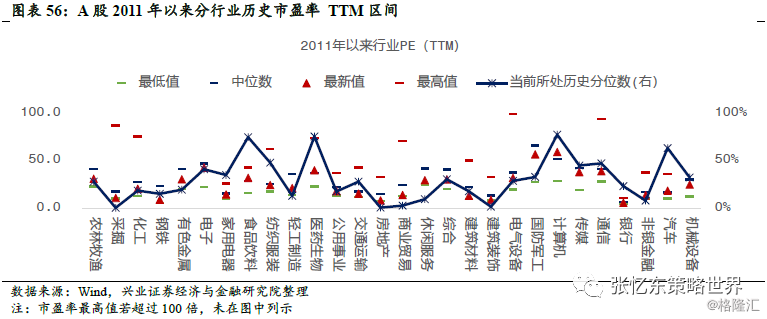 首先,中期投资A股仍需要立足确定性和安全边际,至少不能在A股的长期底部区域 “亏大钱”。比较各行业过去十年的市盈率和市净率,目前非银金融、休闲服务、建筑装饰、商业贸易、房地产、采掘、有色金属、交通运输、国防军工、汽车、公用事业、银行等处于历史的估值洼地。