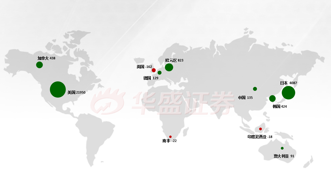 上周各国市场均未出现资金大幅流出的现象,英国净流出1.6亿美元已经是“最差成绩”。