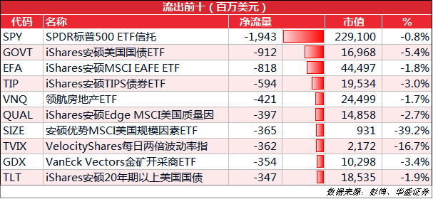 做多恐慌指数的TVIX随着大盘强劲反弹、恐慌指数大跌,上周也成为资金抛售的对象。
