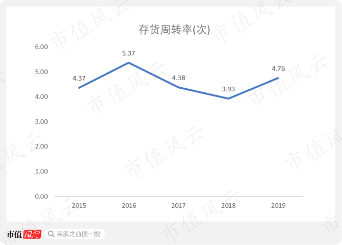 2015-2019年,金嗓子的存货周转率在3.5-5.5之间。