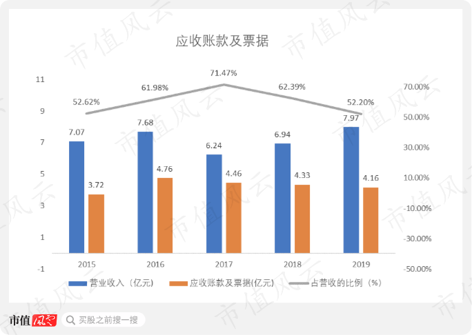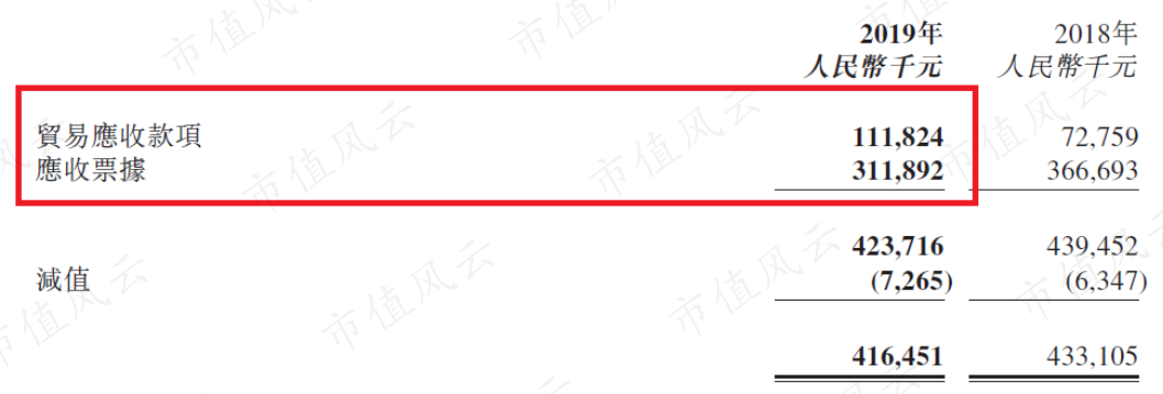具体构成方面,应收票据是大头,占比超过70%,剩下才是占比20%左右的应收账款。