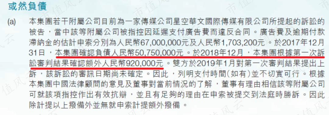 另外的两宗官司,情况也差不多,都是子公司因拖欠广告代理商的广告费而成为被告。