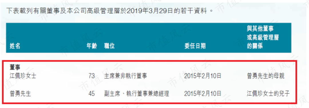 而母公司的实控人、副主席曾勇,正是江佩珍的儿子。
