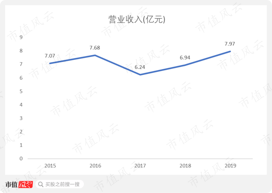 同期的营业收入,从2017年的6.24亿元触底反弹,后增长至2019年7.97亿元,并超过2016年营收的最高点。