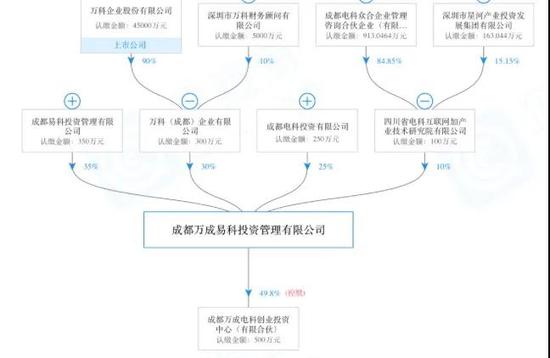 另一家由陆川担任法人的万成易科投,成立于2017年12月28日,从事投资管理和资产管理,由四川省电科互联网持股22.75%。此外,万成易科的股东序列中,也再次出现了万科身影,由万科(成都)企业有限公司持股30%。