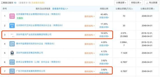 事后证明这是一场“乌龙”。“退出”6天后,星河产业投资又重新出现在这家卫星通信公司的股东阵营中,持股比例从原来的16.62%微幅下降至16.52%。