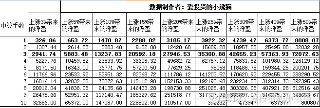 当然花去了这么多成本也是为了赚钱,个人也是比较喜欢这种股价比较高的股票,一手16,000多块,涨10%就有1500多元了,下面的表格是计算了康方这个股票,除去了中签费用之后的盈利情况。