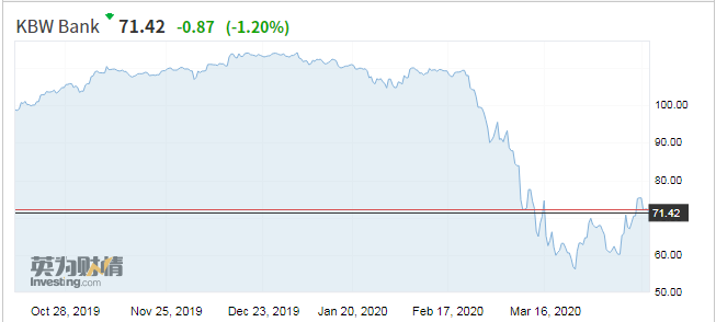 这也为即将公布业绩的美银、摩根士丹利、花旗等大行敲响了警钟。由于美国经济在疫情中风雨飘摇,美联储将联邦基金利率降至零,这些都让整个银行业面临着金融危机以来最严峻的挑战。业绩预期正给银行股带来更大压力。KBW纳斯达克银行指数第一季度暴跌42%,创下有史以来最糟糕的开局。