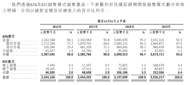截至2016年—2019年财政年度,公司的单一最大客户分别约占总收入的19.1%、20.6%、16.8%及13.5%,公司向五大客户作出的销售额分别约占总收入的35.8%、40.0%、37.7%及28.9%。于往绩记录期间,公司的五大客户均为独立第三方。