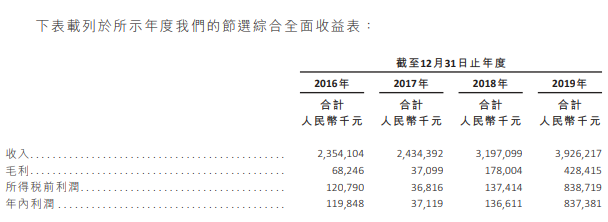 财务方面,公司的收入呈增长势头,年复合增长率为18.6%,从2016年的约人民币23.54亿元增至2019年的约人民币39.26亿元。
