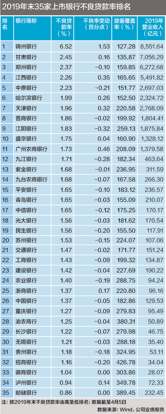 根据中国银保监会公布的数据,2019年四季度末,商业银行不良贷款率为1.86%,与上季末持平。而纳入统计的35家上市银行不良率平均值为1.72%,低于行业整体水平。