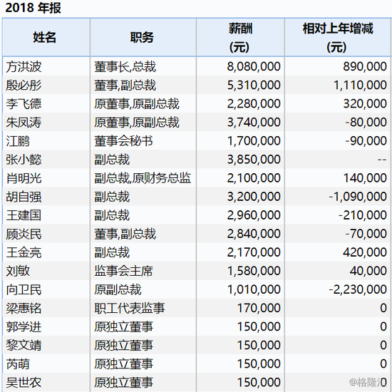 从2018年公司高管薪酬来看,以方洪波为例,方洪波2018年薪酬高达808万,如果冻薪30%,方洪波现在能领到的薪资至少少了200万。