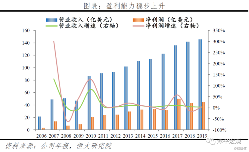 2)盈利能力强劲。2006-2018年,贝莱德集团盈利水平持续提升,营业收入、净利润年均复合增长分别达到16%、22%。2019年贝莱德营业收入145亿美元,净利润45亿美元,2019年《财富》世界500强中位列第237位。