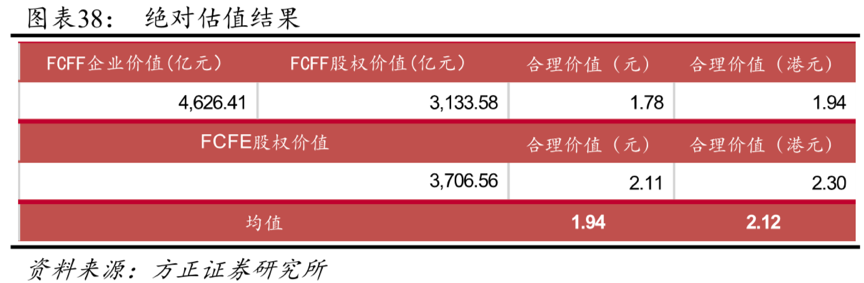 方正证券采用自由现金流折现模型和股权自由现金流折现模型分别对中国铁塔进行了绝对估值,在选取2019年工业增长值增速5.6%为年增长率,并以2019年通货膨胀率2.9%为永续增长率,模型估值得出中国铁塔的合理估值在2.12港元,较当前估值仍有超20%上周空间。