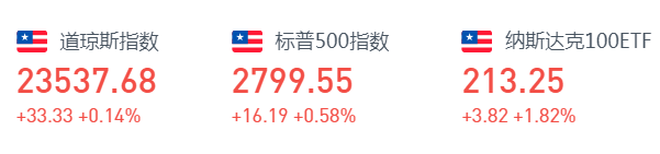 美国首次申领失业救济人数持续超过500万,周四美股道指反覆受压,但亚马逊与奈飞股价则再创新高,推动纳指反弹。截至收盘,道指涨33.3点,报23537.68点;标普500指数涨0.58%,报2799.55点;纳指涨139.2点,涨幅1.66%,报8532.36点。
