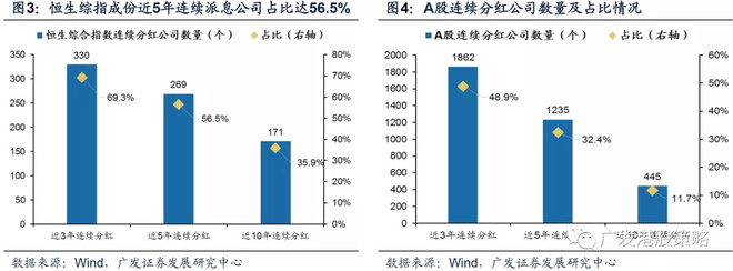此外,如果进一步形成不派息的“学习效应”,将动摇港股市场高股息的长期性价比优势。在新冠疫情对基本面的影响开始显性化之际,甚至有不少投资者开始担心汇丰打开了所谓的“潘多拉魔盒”,引发其他港股公司效仿暂停分红的举动,使得大型养老金、险资、海外配置资金等机构的现金流断裂,从而产生更大的流动性危机和信用危机。考虑到港股市场是一个重分红、机构主导的成熟市场(恒生综指成份股近5年连续分红的公司占比接近56.5%),若暂停派息成为疫情下的“标准动作”,对港股高股息的优势是一大难以估量的损伤。