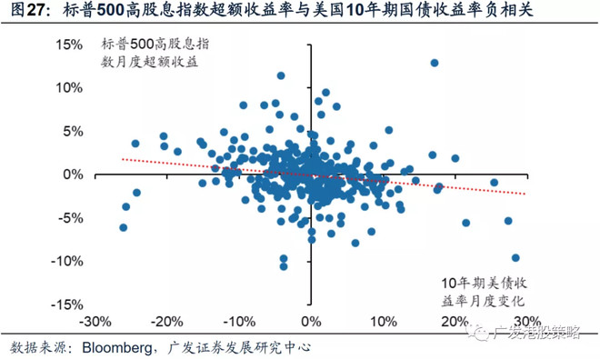 4.2 利率下行期,高股息的宏观择时相对有效,但需规避“价值陷阱”从宏观择时的维度来看,考虑到高股息个股的“类固收”属性,利率下行周期内可加大对该策略的配置,这是在海外市场行之有效的“Smart Beta”策略。以美股1990年至今的长周期数据为例,标普500高股息指数(S&P 500 High Dividend Index)相对S&P 500指数的超额收益率与美国10年前国债收益率变化呈现出负相关性,“股息率-债券收益率”成为高股息Smart Beta策略的定价基准。