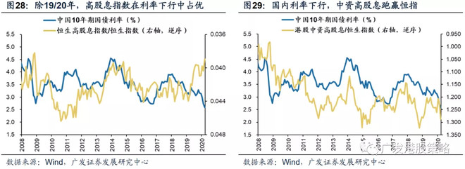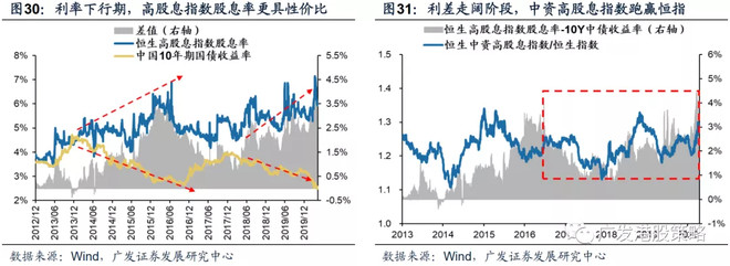 第二,国内利率下行周期,港股中资高股息公司股息率往往出现上涨,产生资金配置和股价的“正循环”;