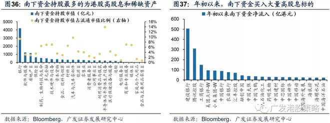 其一,当股息率-10Y中债收益率的利差走阔时,南下资金倾向于增加港股配置,长线配置资金主要投向高股息特征的个股;