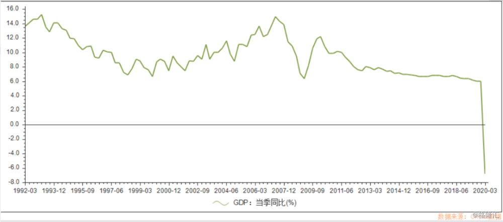 初步核算,2020年一季度国内生产总值206504亿元,按可比价格计算,同比下降6.8%。