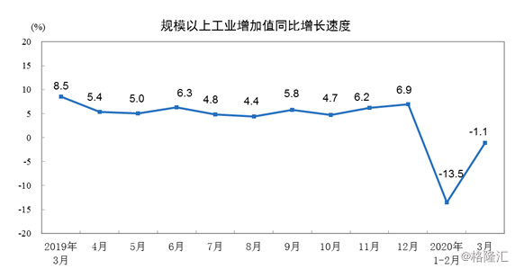 数据显示,3月份规模以上工业增加值同比下降1.1%,降幅较 1-2月份收窄12.4个百分点。
