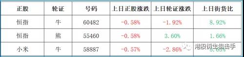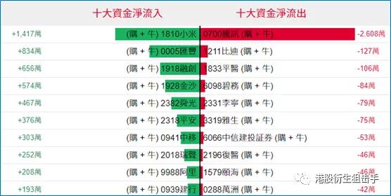好仓(认购证及牛证)方面,有1417万、834万港元资金净流入小米、汇丰部署造多,而有2608万港元资金净流出腾讯套现。