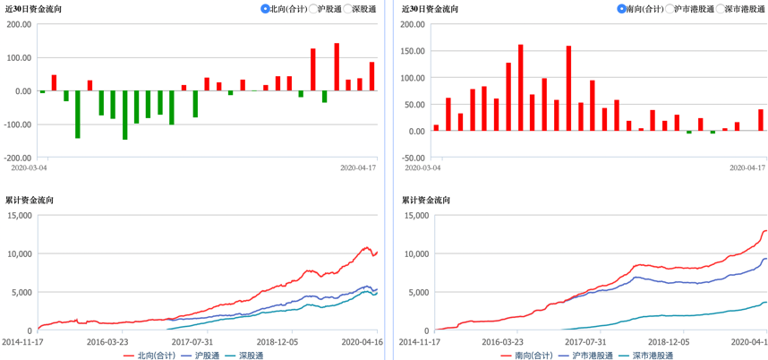 整体局面上,呈现出北上资金净流入大幅增加,南下资金净流入相对减少的趋势。