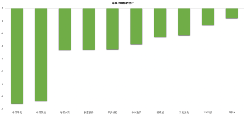 北向资金卖出标的中,中国平安获净卖出最多,为7.55亿元;其次为中国国旅,遭净卖出7.34亿元;海螺水泥、牧原股份、平安银行三只标的亦遭净卖出超3亿元。