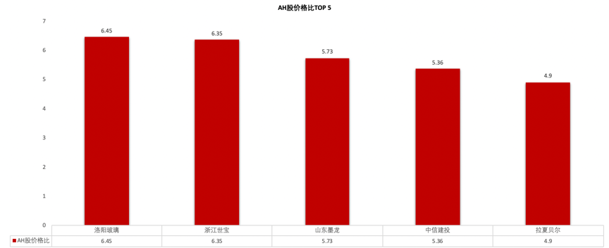 个股方面,洛阳玻璃AH股价格比达到6.45,A股溢价率为544.7%,位列AH股溢价差排名第一。此外,浙江世宝、山东墨龙、中信建投、拉夏贝尔等AH股价格比均超5倍,或存在较大差价回归动力,投资者或可关注相关标的套利机会。
