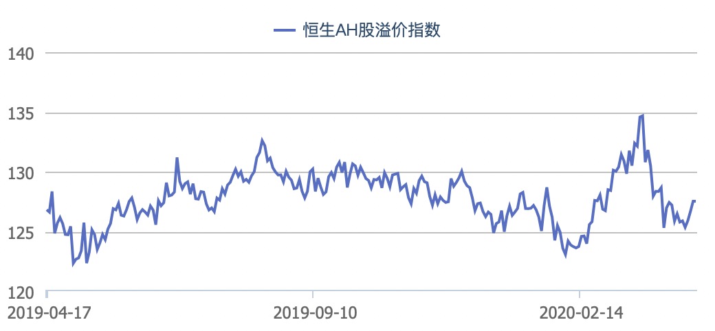 过去一周中,恒生AH股溢价指数由4.13日的125.34点上涨至4.17(周五)收盘时的127.53点。溢价指数的抬升,说明当前AH股的溢价正在扩大,但整体来看仍在中枢区间波动。