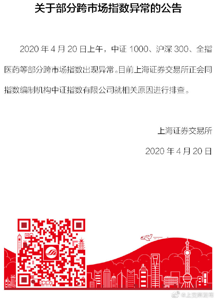 2020年4月20日上午开盘,沪深300、中证1000、全指医药出现了奇怪的现象,沪深300下跌2个多点,但主要成分股却是上涨的状态,所有的投资者都找不到哪一只成分股拖累了指数,最后上海证券交易所公布,原来是出现了指数异常现象。这次指数闹出了乌龙,其实除了这次异常,中国和国外还有很多因基金机构或者交易所出错导致的证券交易乌龙现象,今天我们一起回顾一下。