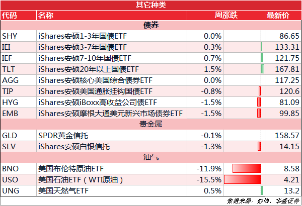 在美联储一再大规模放水的背景下,黄金热度上升,前十中占据2个席位。此外值得注意的是,美油上周继续大跌,但有16亿美元资金涌入USO抄底。