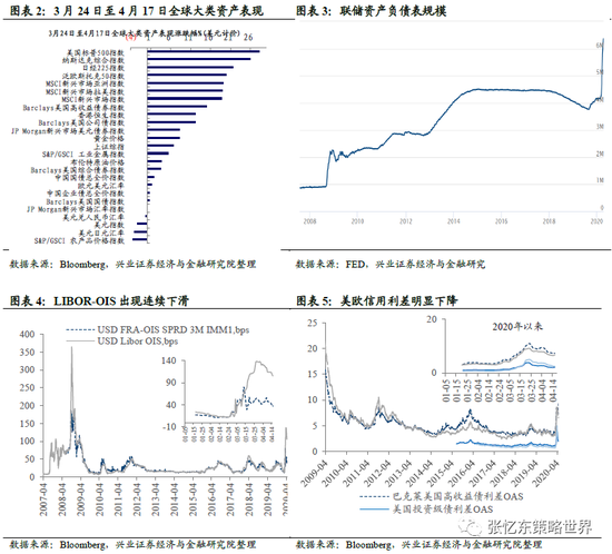 随着前期大跌过程中杠杆资金作为流动性的消耗着逐渐离场,美联储作为流动性提供者开始介入。在 3月23日推出无限量QE计划之后,美股开启反弹之旅。此后,3月27日两万亿美元经济纾困方案、4月6日产油国就减产协议协商开展,日本安倍晋三表示将推出108万亿日元刺激计划,4月9日美联储2.3万亿美元的贷款方案公布(支持中小企业+购买部分垃圾债),美股一路走高。