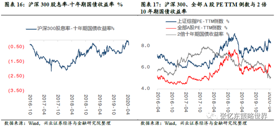 A股资产性价比高。截至4月17日,沪深300股息率-十年期国债收益率为-0.35%,处于2015年以来的93%分位数水平。上证综指PE-TTM倒数为8.3%、全部A股PE-TTM倒数6.0%,高于2倍10年期国债收益率5.1%。