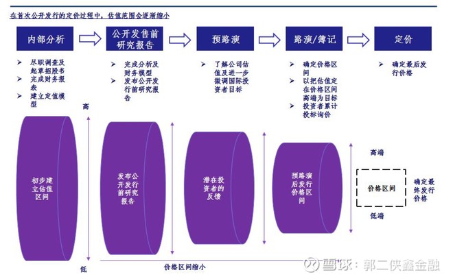在基础分析完成后,承销商与发行人将进行市场调查,即承销商与发行人向投资者介绍拟上市公司,就估值方法、估值水平以及发行人的投资故事进行充分交流,而投资者也会根据路演推介和自己的研究对公司估值进行判断并反馈,承销商和发行人确定定价区间;收集完市场上投资者对股票的定价后,发行公司管理层将与投资者进行一对一路演,深入沟通后确定最终发行价格。