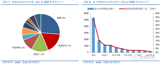 港股通标的主要集中于金融、地产与信息技术,3个行业市值规模合计占比超过50%。虽然标的数量仅相当于港股上市公司总量的20%,但市值规模占比却超过70%,也即港股通标的覆盖了港股绝大多数的龙头公司。从港股通标的的行业分布情况看,金融、地产和信息技术类公司占据了半壁江山,3个行业市值规模占比均达到15%以上,合计占比超过50%。而从港股通持股来看,金融、地产与信息技术仓位同样列居前三。