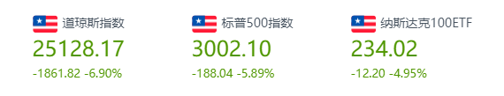 周四开盘,受美国多州新冠病例出现反弹及美联储昨日暗示经济复苏仍漫长两大利空消息影响,美股三大股指全线大幅低开,截至收盘,道指跌1,861.82点,或6.90%,报25128.17点;纳指跌527.62点,或5.27%,报9492.73点;标普500指数跌188.04点,或5.89%,报3002.10点。