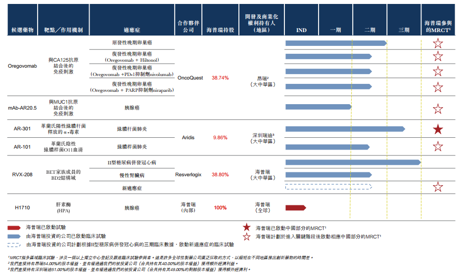 创新药投资领域主要集中在心血管、 NASH(非酒精性脂肪性肝炎)和肿瘤,截至最后可行日期,公司已经获得五项候选药物在大中华区的独家开发及商业化权利。