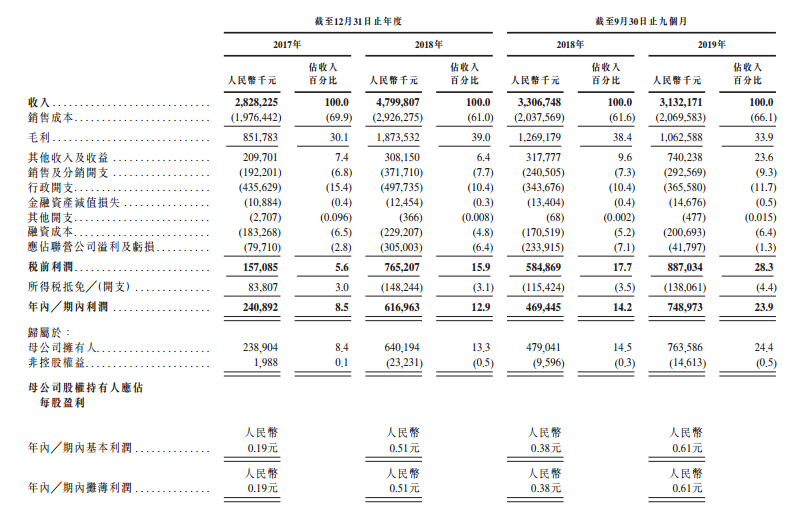 根据招股书显示2018年,海普瑞收入同比增加69.7%人民币48亿元(单位下同),净利润同比增长156.1%至6.17亿元;2019年前九月,海普瑞收入则同比减少5.3%至31.32亿元,净利润同比增加59.6%至7.49亿元。