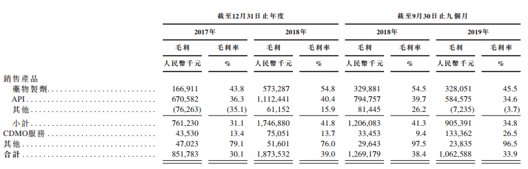 从业务收入占比来看,公司一半以上收入来自肝素API业务,2017年-2018年及2019年前九月,收入占比分别为65.3%、57.3%及54%。药物制剂则为公司第二大收入来源,同期占比分别为13.5%、21.8%及23%。