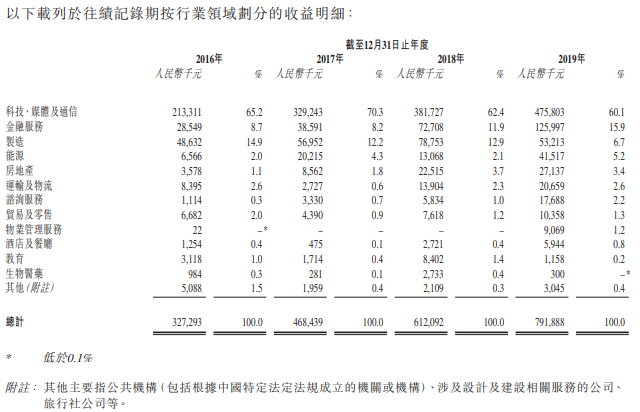 客户方面,主要包括中国私营及公共部门的企业及实体,涵盖(包括但不限于)零售分销及贸易、科技、媒体及通信、金融服务、製造、运输及物流等多个行业。于往绩记录期,该公司所有服务均于中国提供。