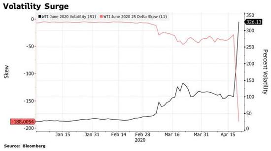 目前,6月份西德克萨斯中质原油50美分看跌期权的兴趣大增,周二一度高达3.90美元,这意味着交易员们已经在研究6月份西德克萨斯中质原油期货可能变为负值的假设。