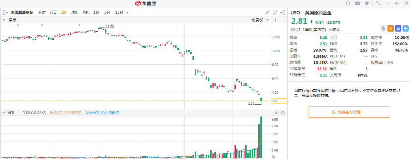 周二美国石油基金暴跌近40%。芝商所(CME)也将于4月22日起允许报价为负的石油期权上市。