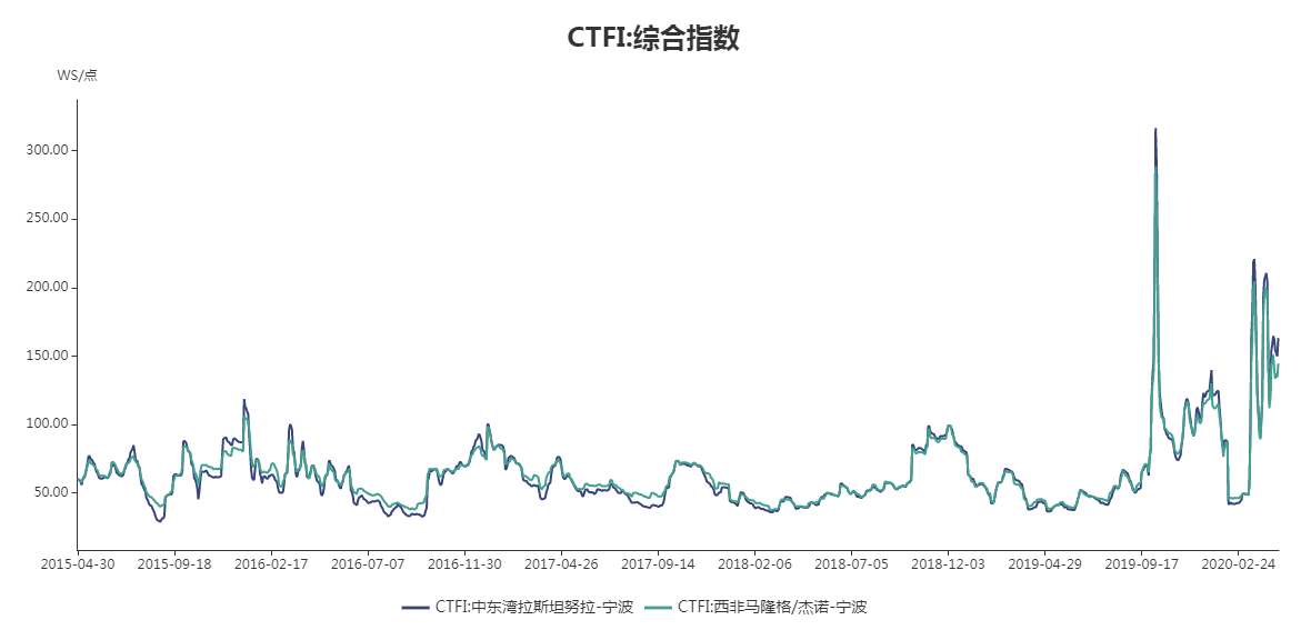随着油价大跌,原油运费连续上涨,截至4月21日,中东-宁波运价指数已经涨至WS163.19高位,此前更曾多次突破200。这一方面反映了东北亚炼厂对廉价原油的储存力度加大,同时船东因油价大跌,其成本占比五成的燃料费用大降(降幅与原油基本一致), VLCC船东如中远海能、招商轮船等公司显著受益。